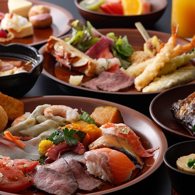 游月山荘では、食材が豊かな兵庫県の地元食材を中心とし、「健康」「安全」「美」を追求した本格和食ビュッフェと、お部屋食にて和の伝統をひと品ひと品に込めた京会席料理をご提供しております。