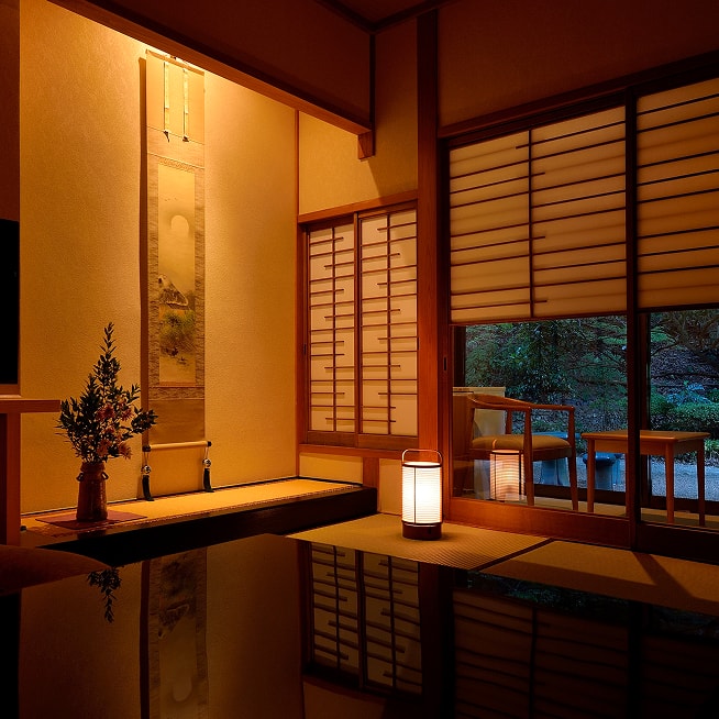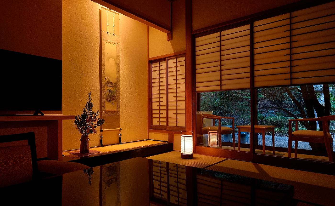 五十余年前の建物である月光園游月山荘。近代旅館のようなバリアフリー化された客室ではありませんが「どこか懐かしい」そんな温かさに触れることのできるお部屋。ゆっくりと流れる時間を、大切な人とお過ごしください。