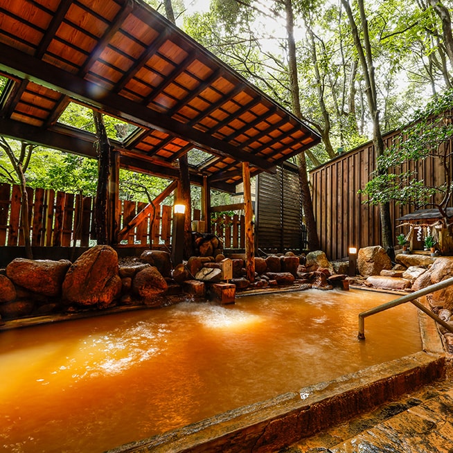 木々溢れる豊かな自然と、その極めて良質な温泉に心も身体も癒されます。変化に富んだ様々な温泉と潤いの香り、頬を撫でる風と開放感を満喫してください。