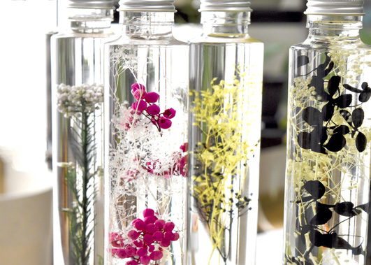 ハーバリウムとは…乾燥花を専用のオイルに浸すことにより、みずみずしい状態でお手入れなく、