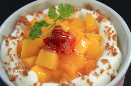 5月はマンゴーのムースとスポンジが層になった、絶品チーズムースです!!
