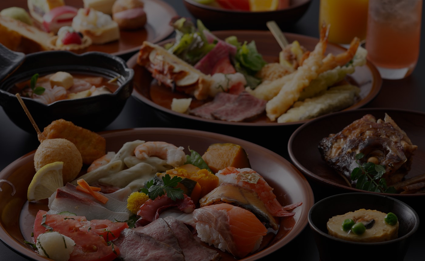 こだわりのメイン料理とビュッフェを組み合わせた「ハーフビュッフェ」スタイルです。最も⼤切にしているのは、地元⾷材を使った「⼿作り」の味わい。⽉替わり・季節替わりで登場する創作和⾷の数々は、体に優しく、訪れるたびに新しい発⾒があります。