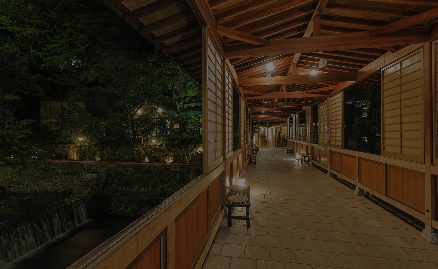川にかかる「⽉光橋」を渡れば、姉妹館「鴻朧館」の施設もご利⽤いただけます。游⽉⼭荘のレトロな雰囲気を楽しみつつ、鴻朧館にある3つの「貸切⾵呂(洞窟・檜・ワイン)」や眺望抜群の⼤浴場、麺処「⼀⼼亭」、バーラウンジへ⾜を運ぶことも可能です。2つの館を⾏き来することで、滞在の楽しみが2倍に広がります。