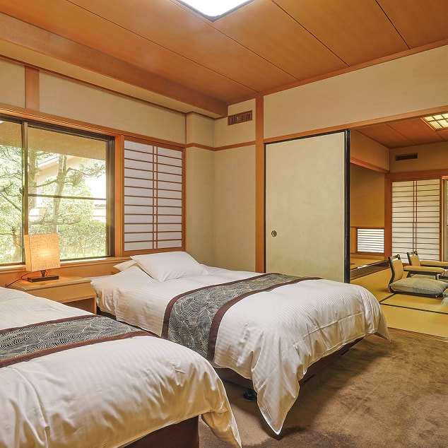 当館に2室だけの貴賓室。お部屋には専用の露天風呂が付いており、気兼ねなくごゆっくりお寛ぎいただけます。