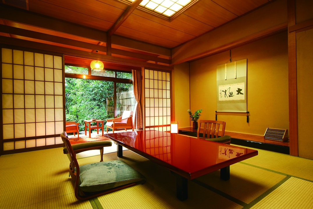 游月山荘の基本タイプ和室。8帖、10帖、12帖。踏込み+広縁付き。