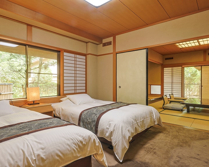 離れ家の風情ただよい、ゆとりと優雅さ香る、和洋それぞれの間が心を癒す。お部屋に居ながらにして心よりのおもてなしをご堪能いただけます。