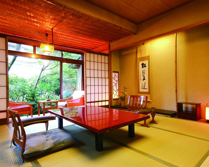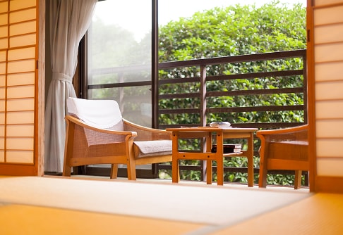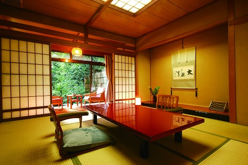 滝川に面したこの3つのお部屋は、空間を広く取った贅沢な造りになっております。 お部屋は8帖となり4名様定員となっております。