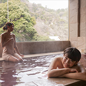 這裡有風景絕佳的大浴場和露天溫泉,可瞭望近處的山脈。不僅如此,還有三種超高人氣的包場溫泉供您選擇。